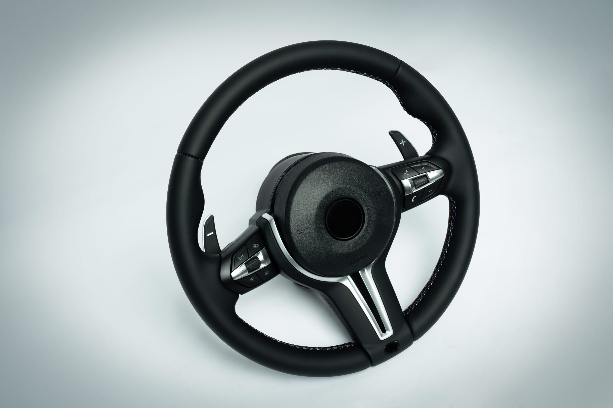BMW F series M3/M4 flat bottom steering wheel leather with silver inner trim
